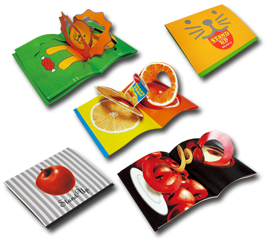 - 輪転機で一気に仕上げてしまう為、後工程がありません。 このようにあけてびっくりの印刷物が短納期で大量生産。